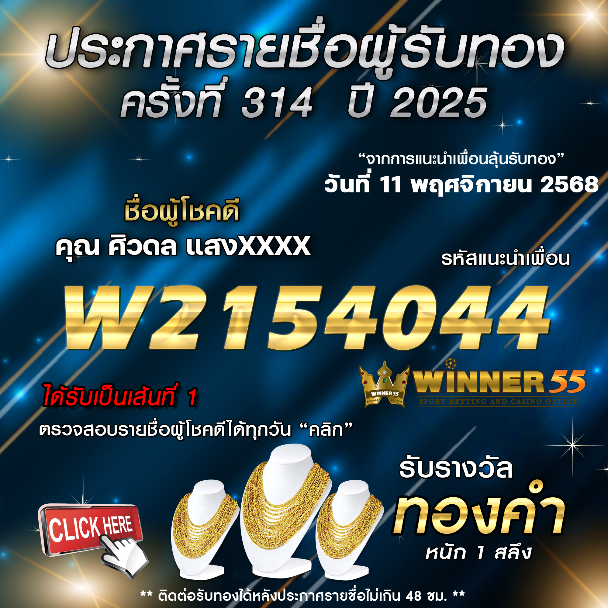 ประกาศรายชื่อผู้โชคดี ศิวดล แสงxxxx ได้รับทองคำหนัก 1 สลึง ประจำวันที่ 11 พฤศจิกายน 2568 11/11/2025